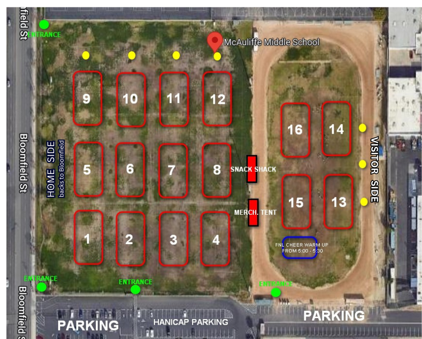 * Watch for "NO FNL PARKING" signs on Bloomfield across the street from the fields. They will tow....